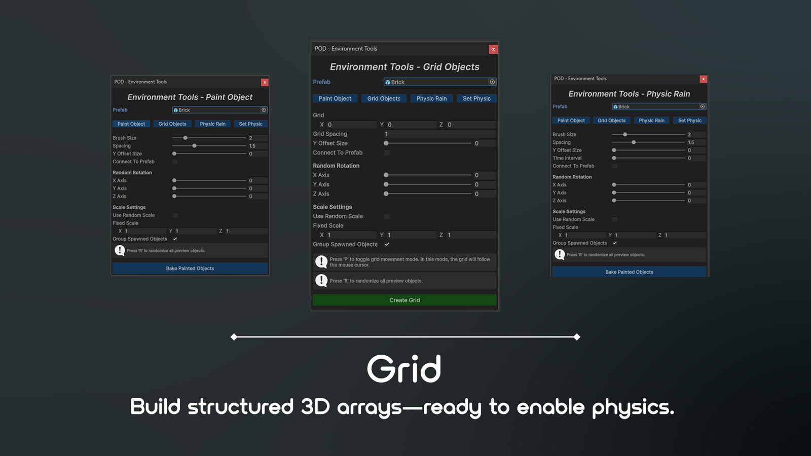 This tool is developed by GridWall Studio for Unity developers, game creators, and interactive experience designers. Each product is crafted with professional-grade functionality and optimized for seamless integration within the Unity ecosystem.